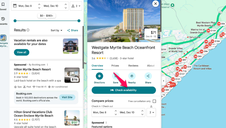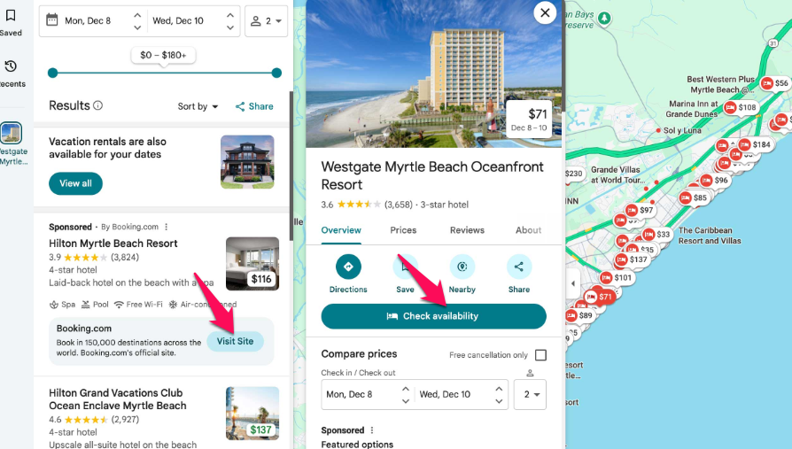 Hiện tại nút Check availability được thay vào đó bằng nút ghé thăm website, ghé thăm website giờ chỉ hiện thị cho các đối tác quảng cáo mà thôi