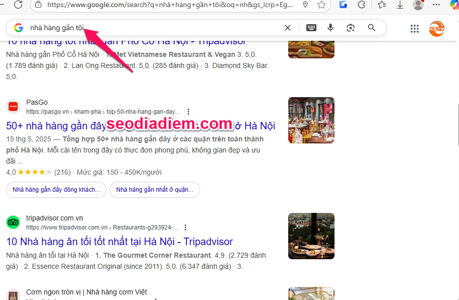 Tôi có thử với ngôn ngữ là tiếng Việt với từ khoá nhà hàng gần tôi thì lại không được google liệt kê như vậy